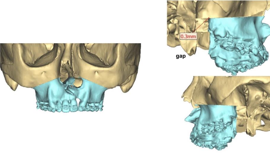 Chirurg môže následne sledovať plne odhalený problém s jasne identifikovateľnými skeletálnymi črtami maloklúzie a počas operácie mu je umožnené vykonať posuny čeľustí v maximálnom potrebnom rozsahu bez obmedzení spôsobenými nesprávnou polohou zubov. Dôležitú úlohu hrá i virtuálne chirurgické plánovanie, ďalej uvádzané ako “VSP”.
