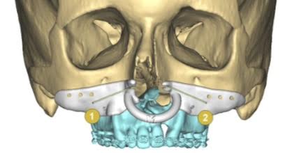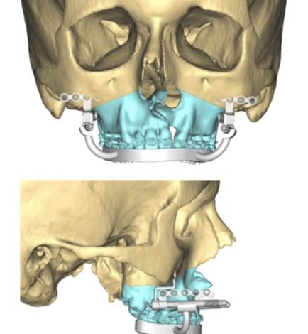 Maxila sa do požadovanej polohy dostáva za pomoci osteodistraktorov.
