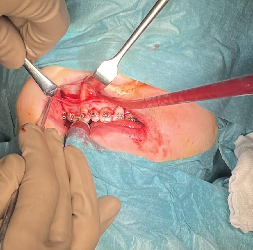 Operácia sa začína rezom a odklopením mukoperiostálneho laloka v celom priebehu budúcej LeFort I osteotómie. Na základe navádzacej dlahy sa následne pristupuje k vykonaniu LeFort I osteotómie.